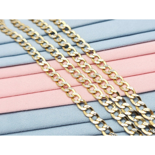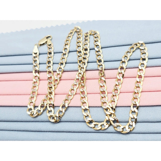 10K Two Tone Gold Diamond Cut Curb Link Chain Necklace