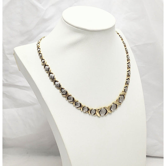 10K Two Tone Gold Diamond Cut XOXO Choker Link Chain Necklace