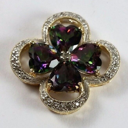 10K Two Tone Multi Tone Gold Designer Purple Crystal & Diamond Pendant Charm
