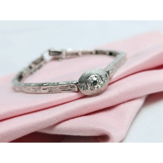 Vintage 14K White Gold Old Cut Diamond Tennis Link Bracelet