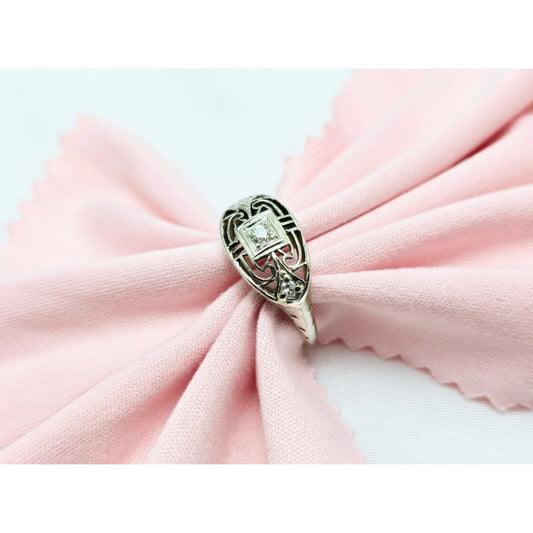 Vintage 14K White Gold 3 Old Cut Diamond Ring