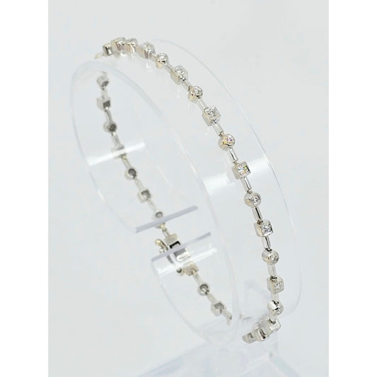 18K White Gold Round Cut Diamond Tennis Link Bracelet