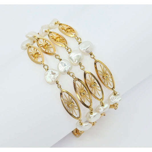 Vintage 18K Yellow Gold Multi Strand Layered Pearl Chain Link Bracelet