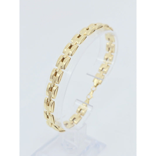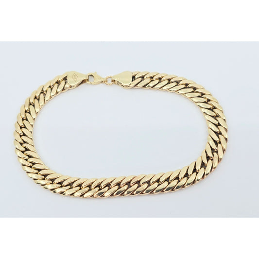 14K Yellow Gold Diamond Cut Wide Link Chain Bracelet