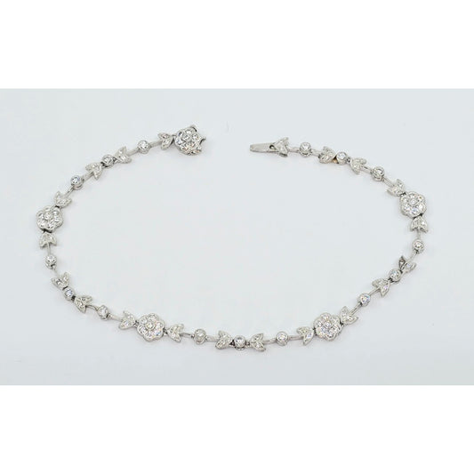 Solid 950 Platinum & 18K White Gold Diamond Floral Tennis Link Bracelet