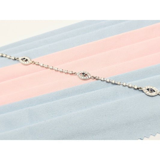 18K & 14K White Gold Evil Eye Diamond & Sapphire Tennis Link Bracelet