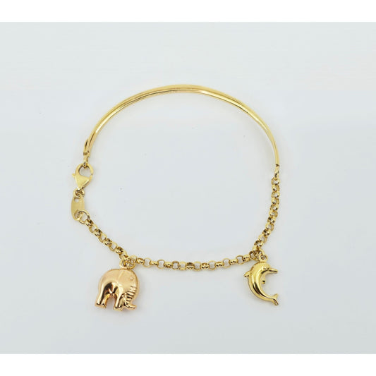 18K Yellow Gold Lucky Elephant, Dolphin Bangle & Link Bracelet