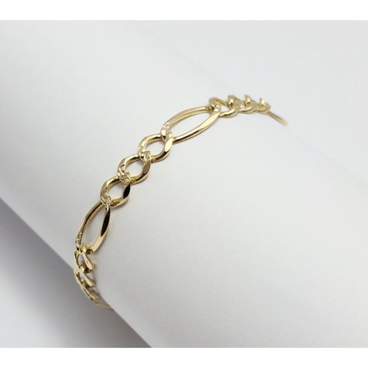 14K Solid Yellow Gold Diamond Cut Figaro Link Bracelet