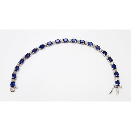 10K Solid White Gold Dark Blue Crystal Tennis Bracelet