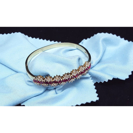 14K Solid Yellow Gold Designer Ruby & Diamond Bangle Bracelet