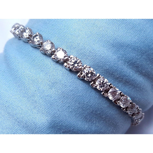 14K Solid White Gold Diamond Tennis Link Bracelet