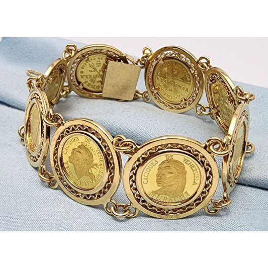 18K Yellow Gold Caciques De Venezuela 21K Gold Coin Link Bracelet
