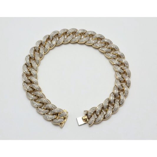 14K Solid Multi Tone Gold Diamond Cuban Link Bracelet