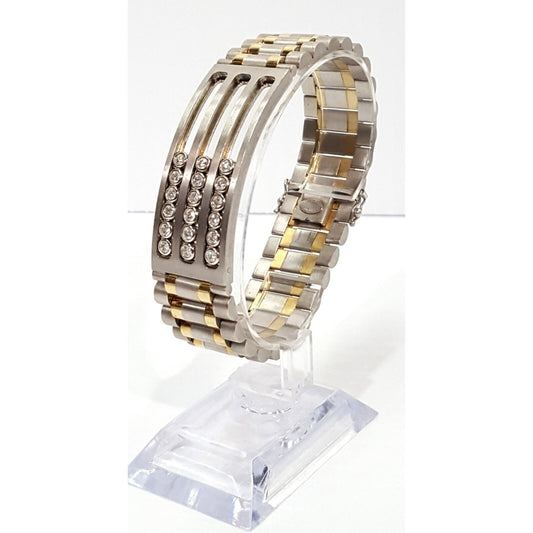 14K Karat Multi Tone Gold Motion Moving Diamond Link ID Bracelet