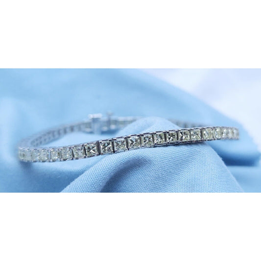 14K Solid White Gold Designer Princess Cut Diamond Tennis Link Bracelet