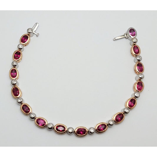 14K Solid Multi Tone Gold Ruby & Diamond Tennis Link Bracelet