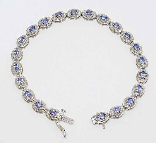 10K White Gold Designer Diamond & Tanzanite Tennis Bracelet