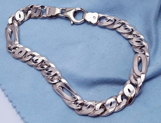 Unique 10K Karat Solid White Gold Custom Design Figaro Link Bracelet Italy Made