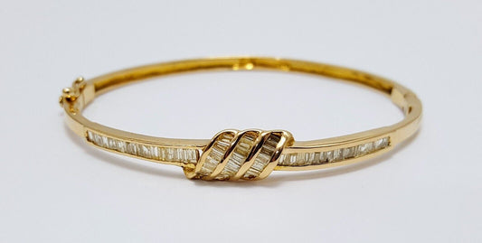 Elegant 14K Solid Yellow Gold Designer Spiral Baguette Diamond Bangle Bracelet