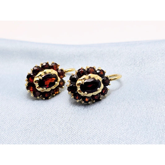 18K Yellow Gold Garnet Flower Hinged Earrings