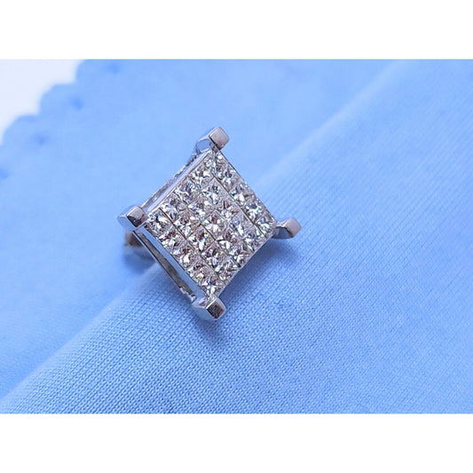 Single 14K White Gold Square Princess Cut Diamond Screw Back Stud Earring