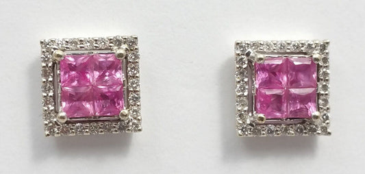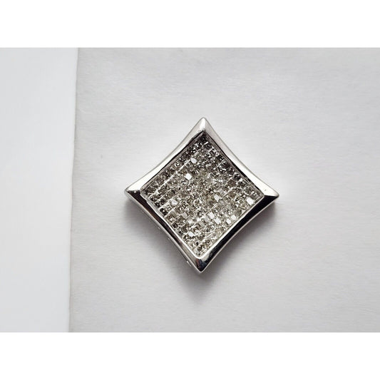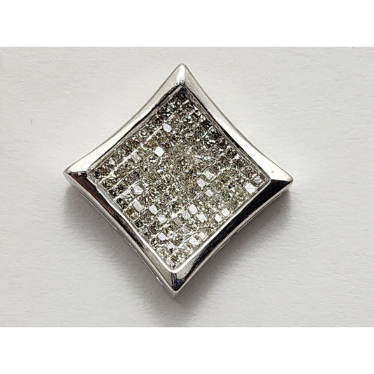 10K White Gold Designer Square Diamond Stud Earrings with Backings