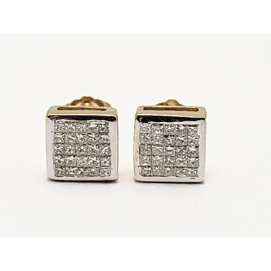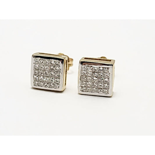 14K Yellow Gold Square Shaped Diamond Stud Earrings
