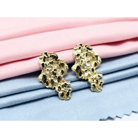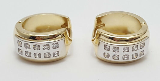 10K Solid Two Tone Gold Diamond Stud Earrings