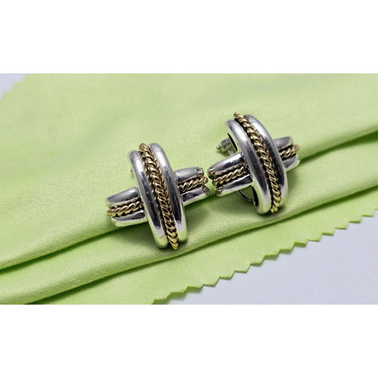 Tiffany & Co Signature X Clip On Earrings 18K Yellow Gold & Sterling Silver 925