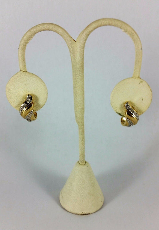 10K Solid Yellow Gold Designer Stud Spiral Swirl Diamond Earrings