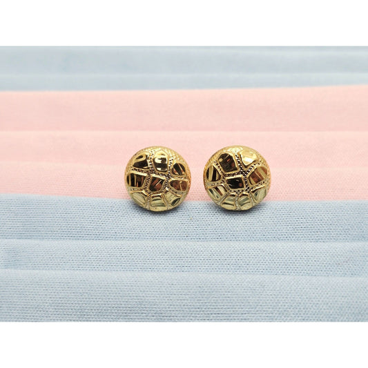 14K Yellow Gold Designer Ball Polished Onyx Stud Earrings