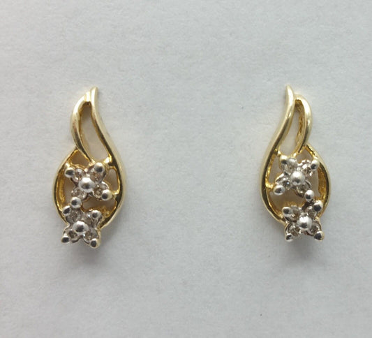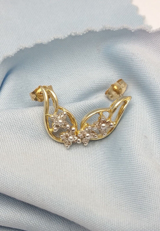 14K Yellow Gold Designer Stud Earrings With Diamonds