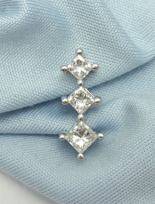 14K Solid White Gold Diamond 3 Stone Drop Charm Pendant