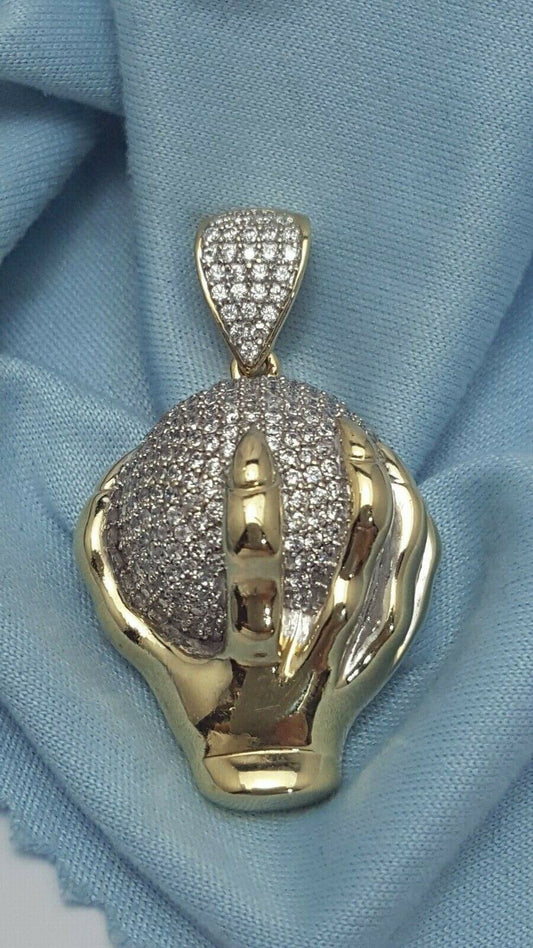 10K Yellow Gold Hand Holding Globe World Cubic Zirconia Charm Pendant