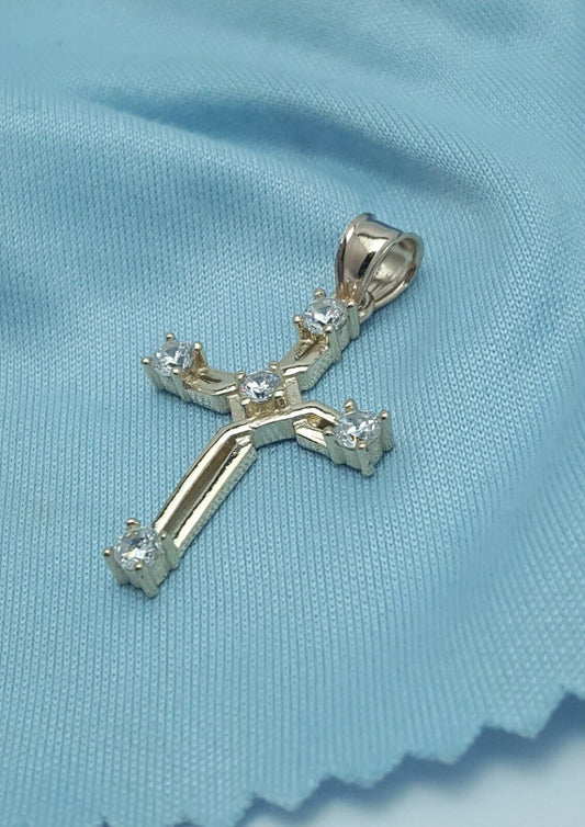 14K Solid Yellow Gold Cubic Zirconia Religious Cross Charm Pendant