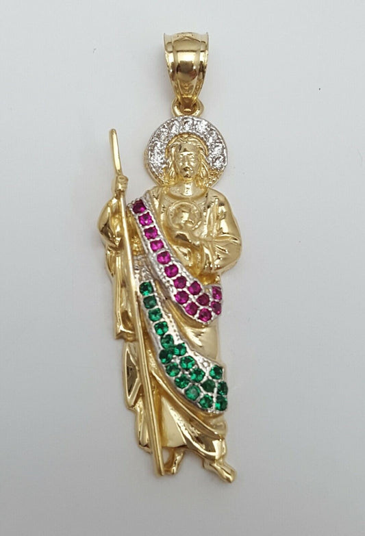 14K Solid Yellow Gold Religious Saint Jude Cubic Zirconia Charm Pendant