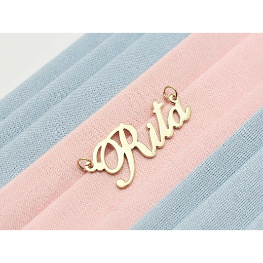 14K Yellow Gold Name Initial " Rita " Charm Pendant