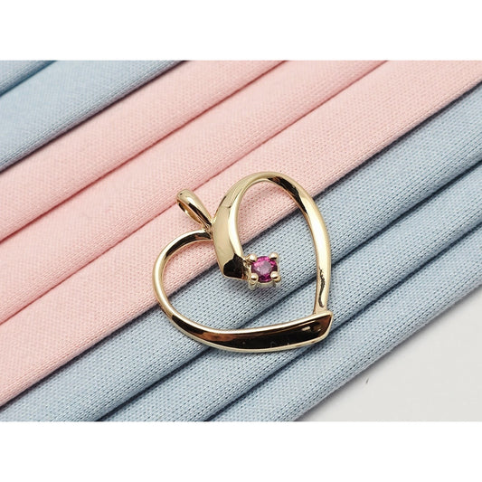14K Yellow Gold Open Heart Ruby Charm Pendant