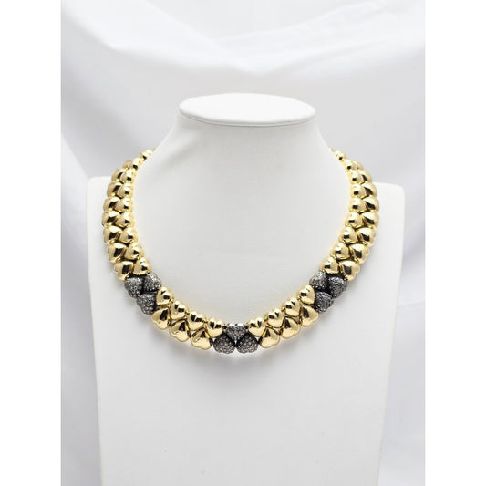 18K Two Tone Gold Antique Multi Heart Diamond Choker Link Necklace