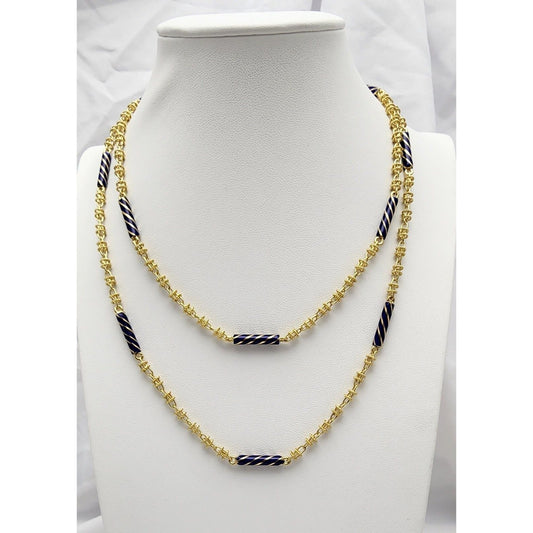 18K Yellow Gold Blue Enamel Link Chain Necklace