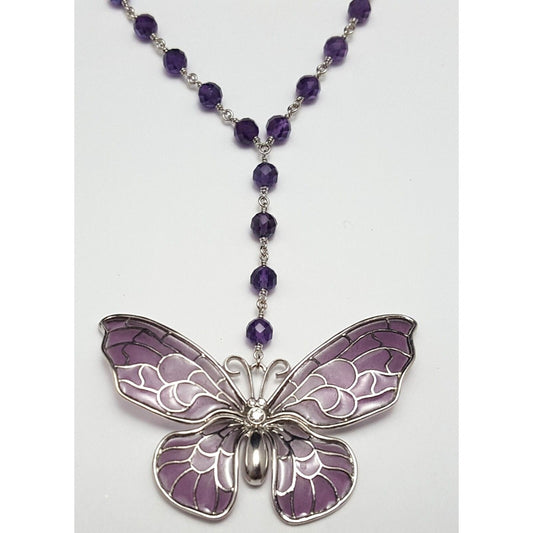 Tiffany & Co 18K White Gold Amethyst Diamond Enamel Butterfly Pendant Necklace