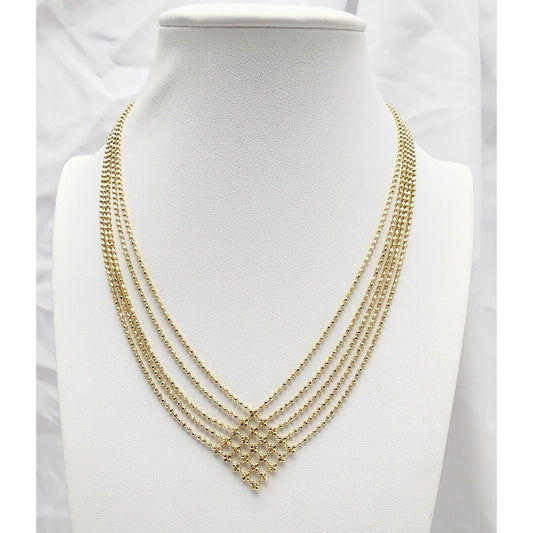 14K Yellow Gold Multi Layered 5 Strands Line Bead Ball Chain Necklace