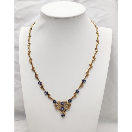 18K Yellow Gold Diamond & Sapphire Choker Chain Necklace