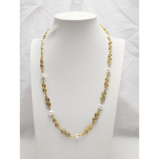 Vintage 18K Yellow Gold Filigree Pearl Link Chain Necklace