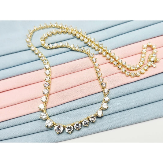 14K Yellow Gold CZ Graduated Link Chain Necklace