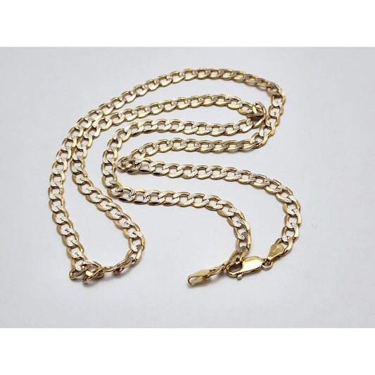 14K Two Tone Gold Diamond Cut Curb Link Chain Necklace