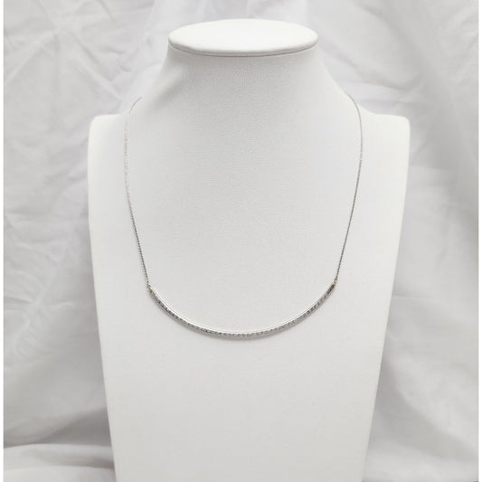 14K White Gold Mesh Link Chain Necklace & Triple Diamond Round Charm Pendant
