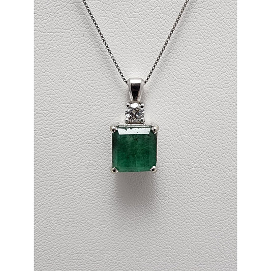 14K White Gold Emerald & Diamond Box Link Chain Necklace