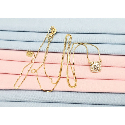 14K Yellow Gold Round Diamond Resizable Box Link Chain Necklace