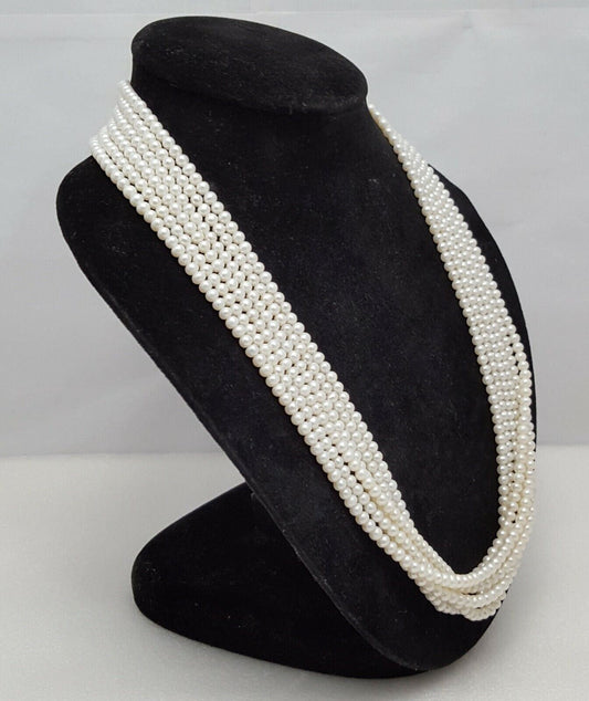 14K Yellow Gold Graduated 6 Six Strand Row Pearl Necklace
